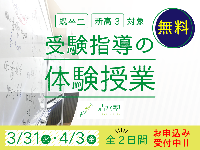 この度、無料で3月31日・4月3日の2日間に新高3・既卒生へ受験指導の体験授業をおこないます!
