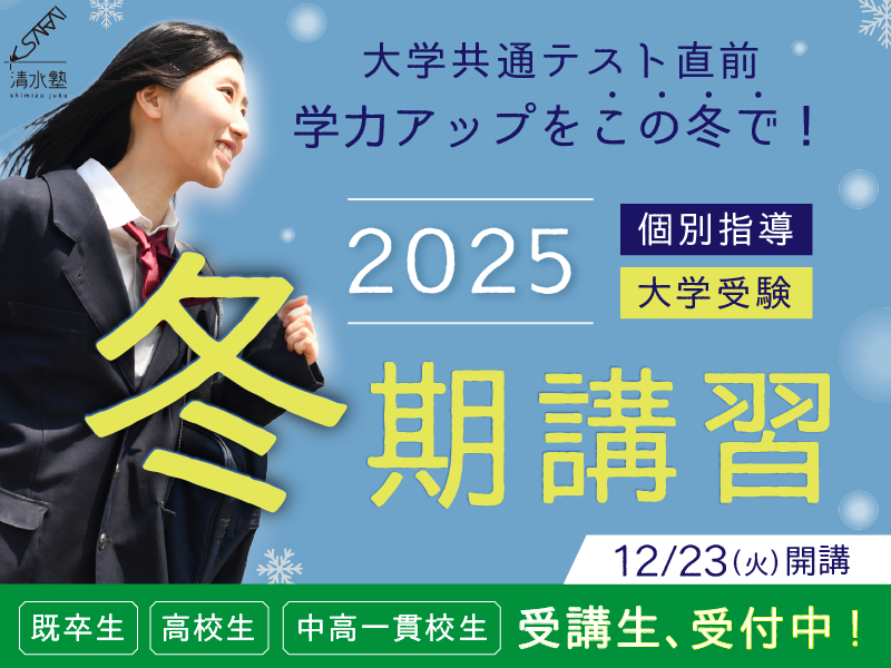 | 日程 | 冬期講習:2025年12月23日(水)~2026年1月7日(水) 共通テスト直前講習:2026年1月9日(金)~13日(火) |